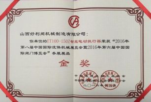 第六屆中國(guó)國(guó)際閥門(mén)博覽會(huì)金獎(jiǎng)